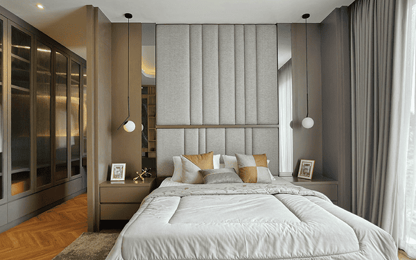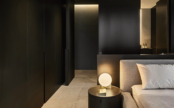 A long press on the bedside switch, and the home begins to rest. The house secures itself. The air settles, just right for sleep. Lights soften. Curtains close.