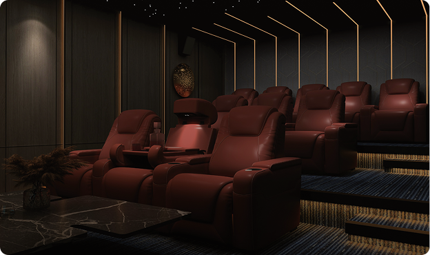 Immersive lighting and media for refined spaces.